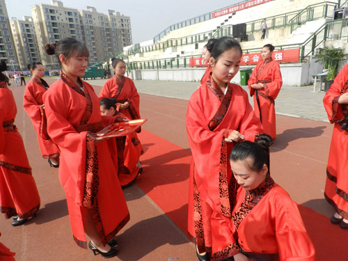 禮文化是華夏文化的核心,冠禮和笄禮是一個新的成人第一次踐行華夏禮儀, 也是冠者進(jìn)入華夏禮儀系統(tǒng)的起始。所謂"冠者禮之始也",淮北市天一中學(xué)繼承并發(fā)揚(yáng)這一優(yōu)良傳統(tǒng),堅持從“品”樹人,從“學(xué)”育人。自20106月至今,據(jù)不完全統(tǒng)計,已有5000多名學(xué)生接受天一中學(xué)成人儀式,成為頂天立地的成人。