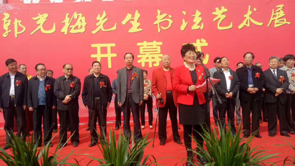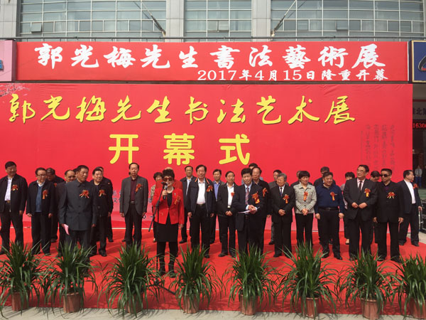 中國毛體書法家協(xié)會理事,中國毛體書法家協(xié)會安徽分會副主席、開渠書畫院院長、中國毛體書法家協(xié)會淮北分會主席郭光梅先生書法藝術(shù)展于2017年4月15日上午9點30分在淮北體育場東門淮北市體育中心展廳隆重舉行開幕式。市人大常委會常務(wù)副主任方宗澤,市委常委、市委宣傳部部長顧文,市人大常委會副主任楊彥穎、余敏輝,市政協(xié)副主席蔣守彬、李彥秋、錢丹嬰,市人大常委會秘書長陳朝祥,市政府秘書長宋偉出席開幕式。