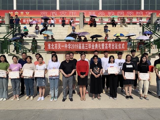 6月4日,淮北市天一中學(xué)2019屆高三畢業(yè)典禮暨高考出征儀式在天一中學(xué)體育場舉行。淮北一中校長、天一中學(xué)董事長馬穎女士、天象集團(tuán)董事長、天一中學(xué)副董事長孔令發(fā)先生、天一中學(xué)董事、天一初中校長郭光梅女士,以及天一中學(xué)校長林祥華先生、黨支部書記杜宏偉先生、常務(wù)副校長李平先生、副校長王小虎先生、天一初中常務(wù)副校長陳一中先生、副校長胡磊先生等出席了這次典禮。全體畢業(yè)生在國旗和驕陽下喊出青春的誓言,校領(lǐng)導(dǎo)、教師還有家長匯集于此,共同見證孩子們激昂又榮耀的一刻。