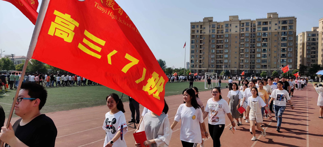 最后在慷慨激昂的出征曲中,畢業(yè)生們搖旗出發(fā),高一學(xué)生以及家長、老師為同學(xué)們夾道送上祝福。