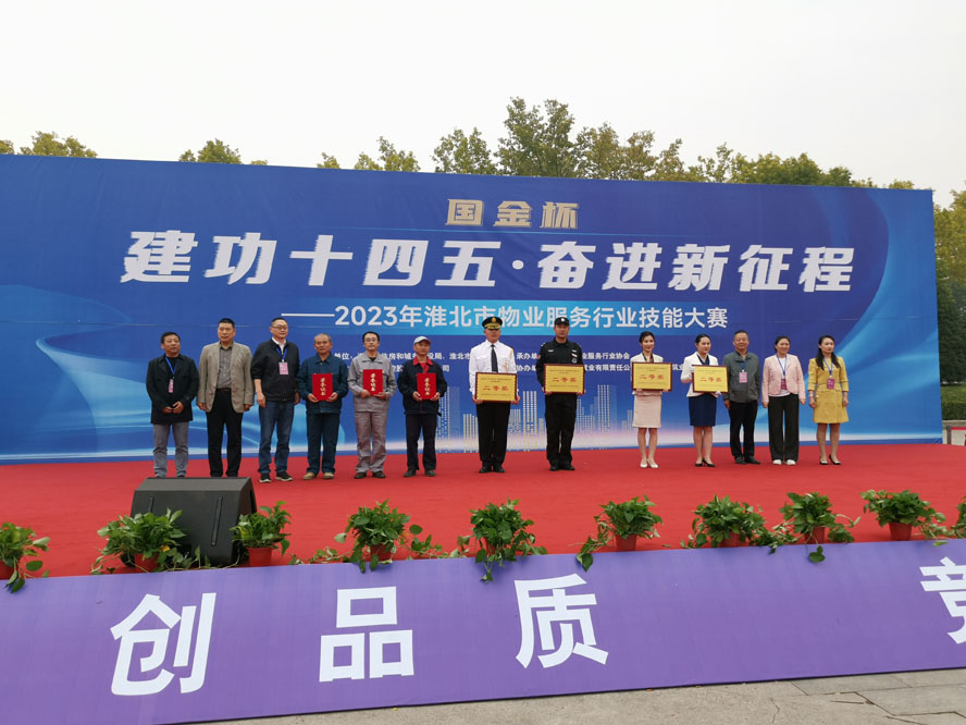 為弘揚(yáng)勞動(dòng)精神、工匠精神,展示物業(yè)工作者的專業(yè)風(fēng)采和精神風(fēng)貌。2023年10月19日上午,2023年淮北市物業(yè)服務(wù)行業(yè)技能大賽在市體育場(chǎng)隆重舉行,天象物業(yè)代表隊(duì)一行14人參加了活動(dòng)賽事,經(jīng)過(guò)多日的苦訓(xùn)備戰(zhàn),天象物業(yè)公司在參加的三個(gè)比賽項(xiàng)目中,兩項(xiàng)獲獎(jiǎng),維修組榮獲二等獎(jiǎng)、秩序組榮獲三等獎(jiǎng),天象物業(yè)公司榮獲優(yōu)秀組織獎(jiǎng)。