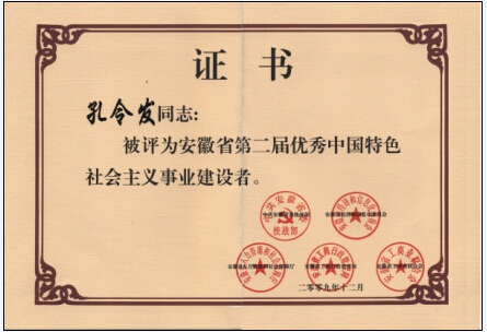 2009年孔令發董事長獲評優秀社會主義事業建設者